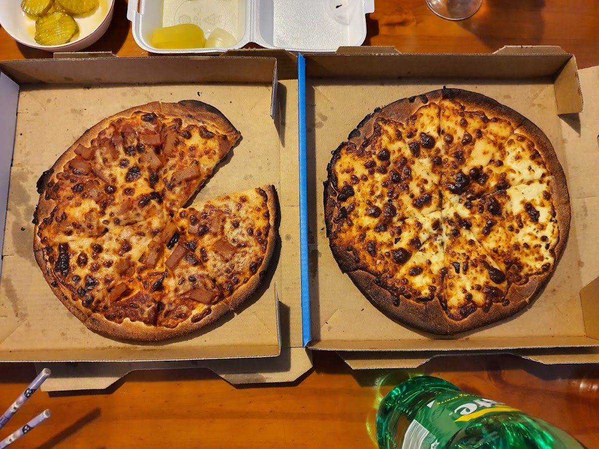 The new management doing really well . Both pizza was absolutely fantastic! The crust was perfectly crispy, the sauce is tangy and flavourful, and the cheese was melty and gooey. Every bite was a delicious experience, and I highly recommend it!